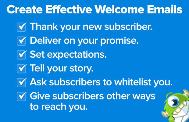 Send a welcome email or email series to new subscribers. Doing this has several important benefits.