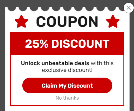 Show your coupon only on pages that are most likely to drive conversions. For ecommerce businesses, this might be product pages or checkout pages. If someone is already considering a purchase, a coupon at this stage is highly likely to push them to complete their order.