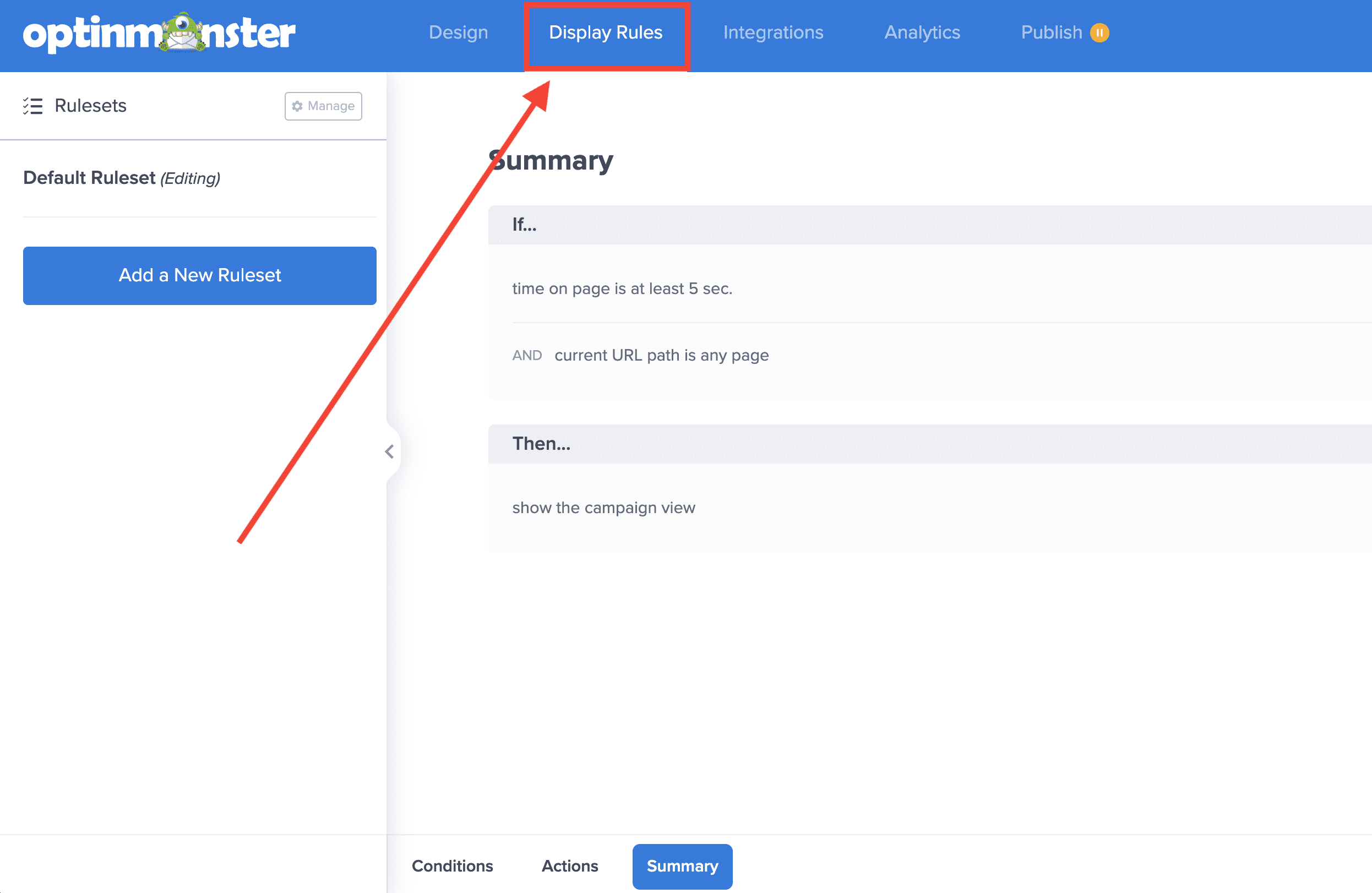 - Navigate to the Display Rules view in the campaign builder.