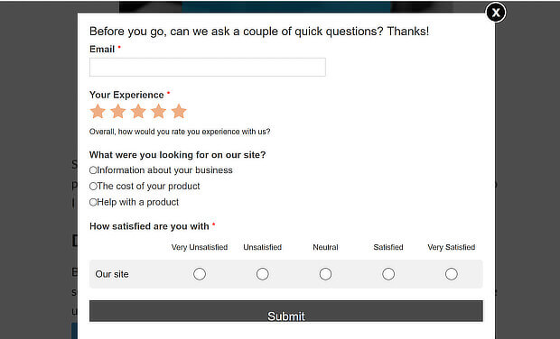 For example, you could use WPForms to create a survey that displays right before visitors exit.